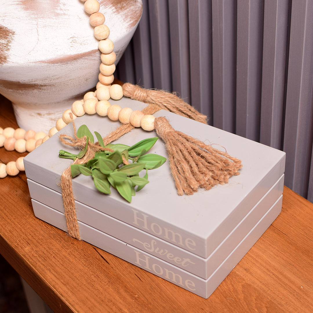 Decorative book stack tied with jute rope and green faux leaves. A simple and cozy accent for ... Decorative book stack tied with jute rope and green faux leaves. A simple and cozy accent for your home shelves or tabletop decor. Read More Read LessCouldn't load pickup availability