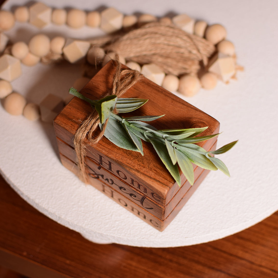 Decorative book stack tied with jute rope and green faux leaves. Brings a warm, rustic charm t... Decorative book stack tied with jute rope and green faux leaves. Brings a warm, rustic charm to your space. Read More Read LessCouldn't load pickup availability