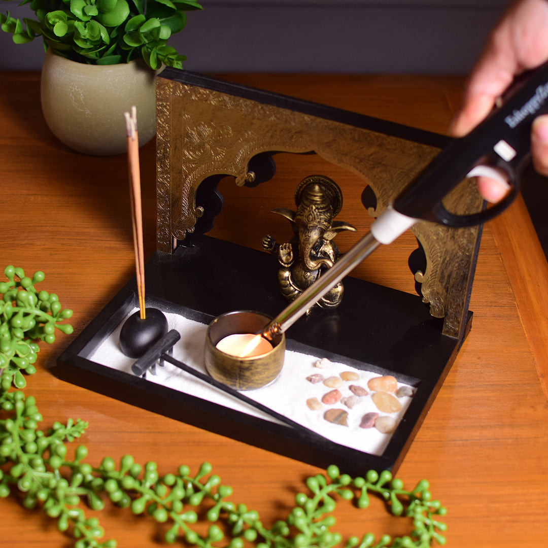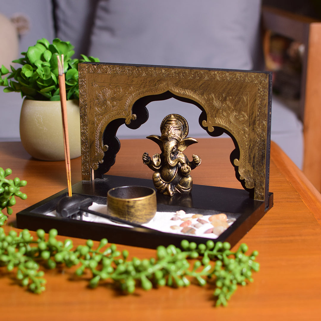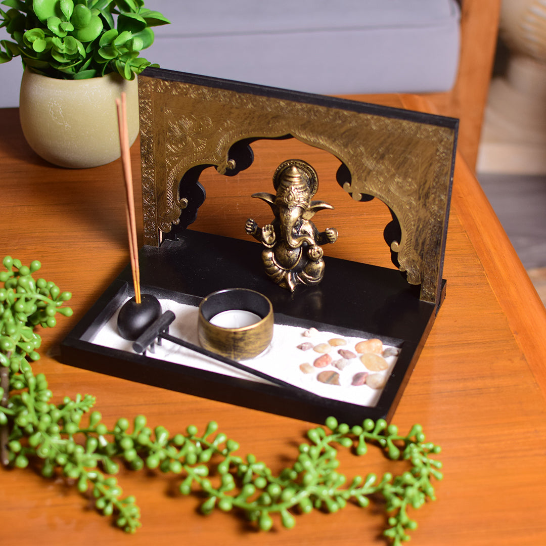 Serenity zen garden with a Ganesha figurine, incense holder, sand base, and decorative stones.... Serenity zen garden with a Ganesha figurine, incense holder, sand base, and decorative stones. A calm and graceful décor piece for desks, meditation spaces, or gifting. Read More Read LessCouldn't load pickup availability